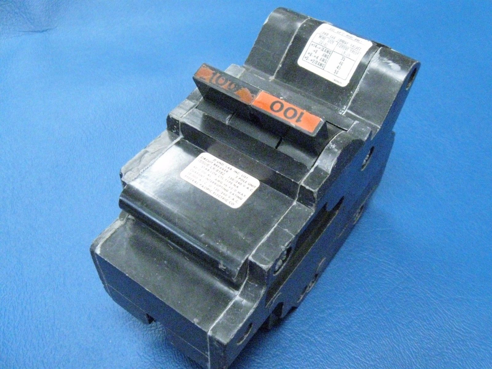 100A FEDERAL PACIFIC StabLok 100 Amp MAIN Breaker Worn Paint Circuit Breakers