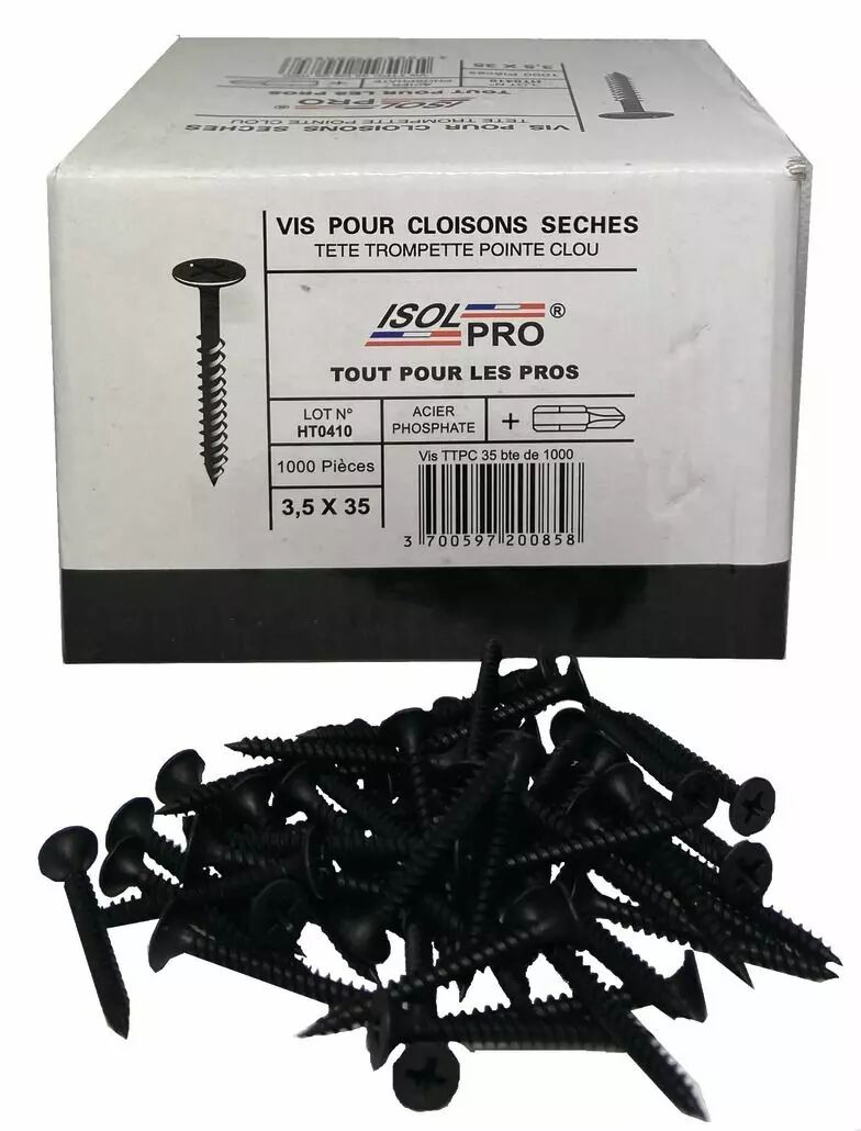 Vis TTPC pour plaque de plâtre - Ø 3,5x35 mm - boîte de 1000 pcs de la marque PIECES ET ACCESSOIRES INDUSTRIELS sur Pointp.fr. Retrait en agence sous 2h. 850 Agences et 150 Showrooms. Paiement sécurisé.